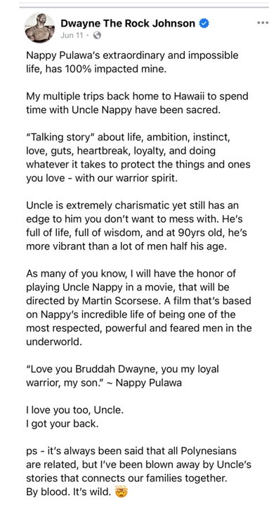 Dwayne Johnson, The Rock, Face Book posting about Nappy